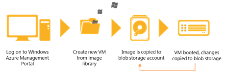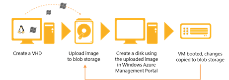 Users also can upload a sysprepped image on the Windows Azure Management Portal. For more information, go to Creating and Uploading a Virtual Hard Disk. Figure 3 shows the basic steps for uploading an image to create a VM: