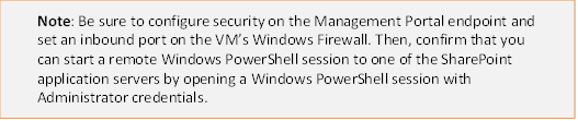 - Configure security on the Management Portal endpoint and set an inbound port in the VM’s Windows Firewall.