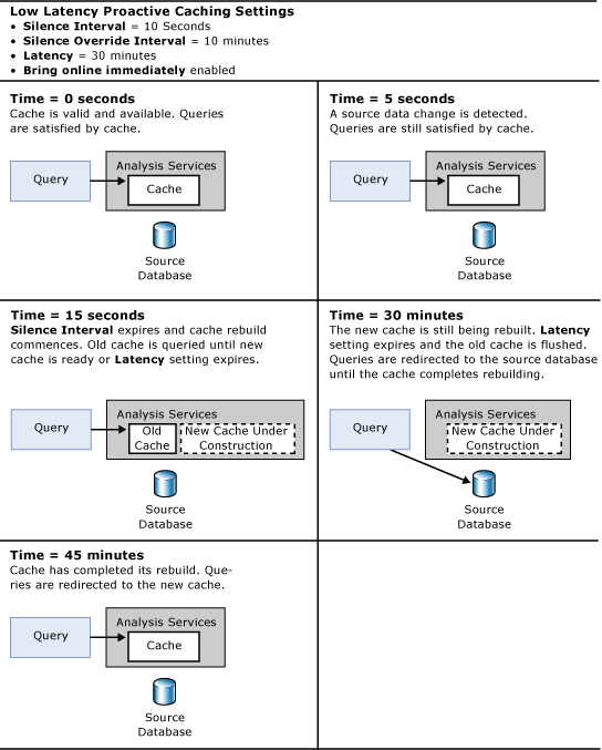In scenarios where you require near real-time data refreshes and the superior query performance of MOLAP, Analysis Services provides proactive caching. Proactive caching is an advanced feature that requires a special set of performance tuning techniques to ensure that it is applied effectively. For more information on the performance considerations of using proactive caching, see Near real-time data refreshes in this white paper.