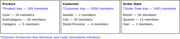 - Compression—Analysis Services compresses the source fact data and its aggregations to approximately 30 percent of the size of the same data stored in a relational database. The actual compression ratio varies based on a variety of factors, such as the number of duplicate keys and bit encoding algorithms. This reduction in storage size enables Analysis Services to resolve a query against fact data or aggregations stored in a MOLAP structure much faster than against data and aggregations stored in a relational structure because the size of the physical data being retrieved from the hard disk is smaller.
